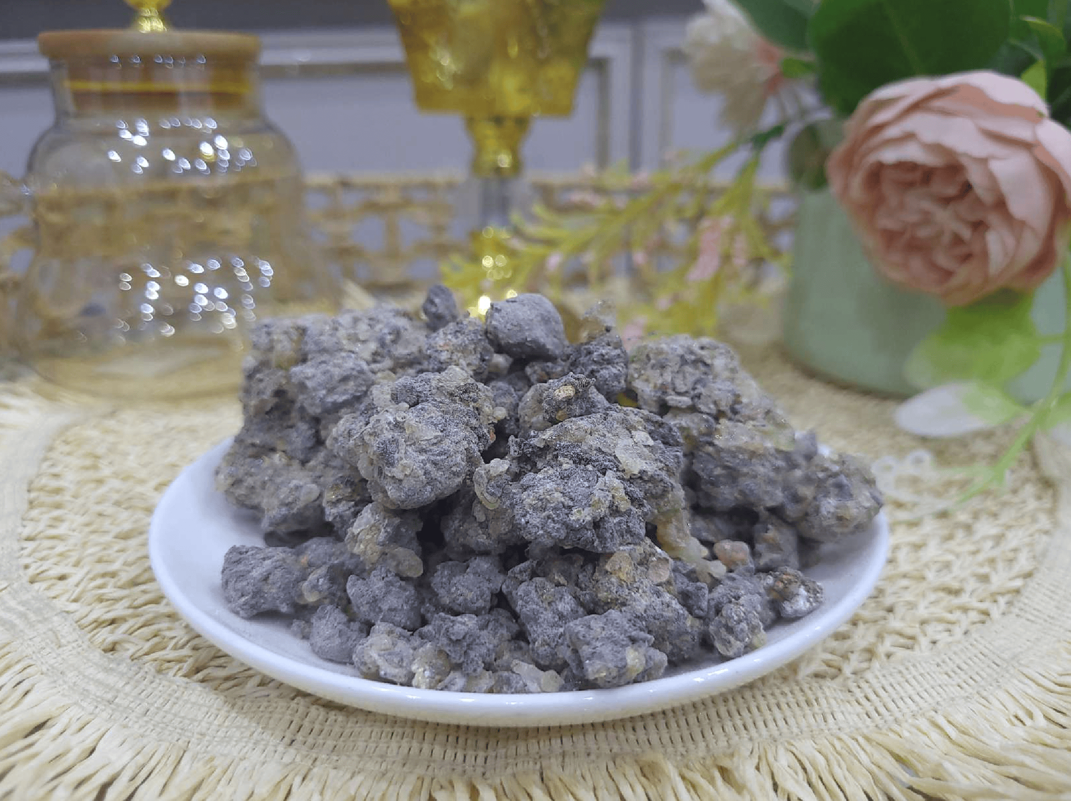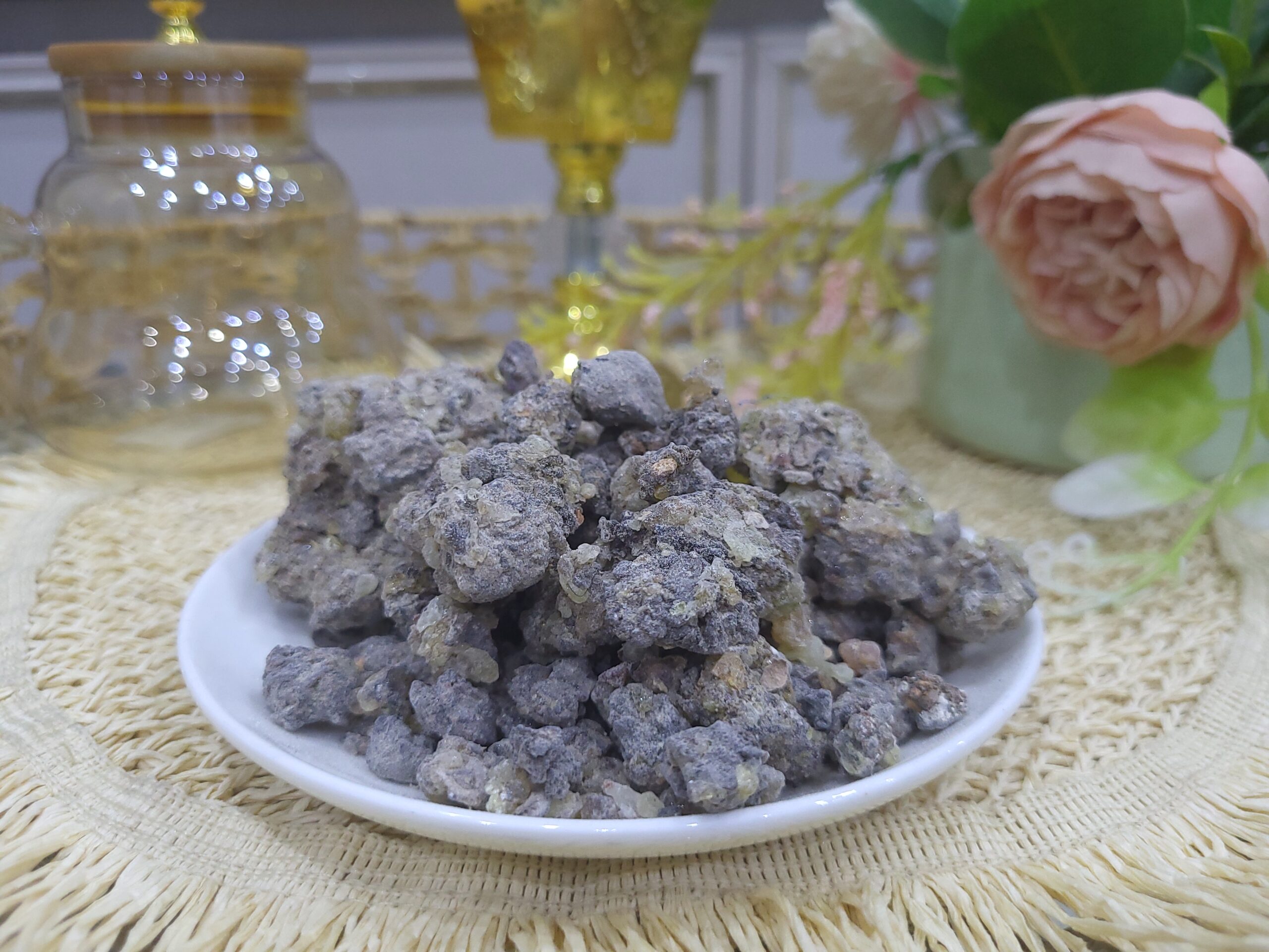Burning frankincense on charcoal fills the air with a sacred, calming aroma — used for purifying spaces, welcoming guests, and bringing peace to homes.
