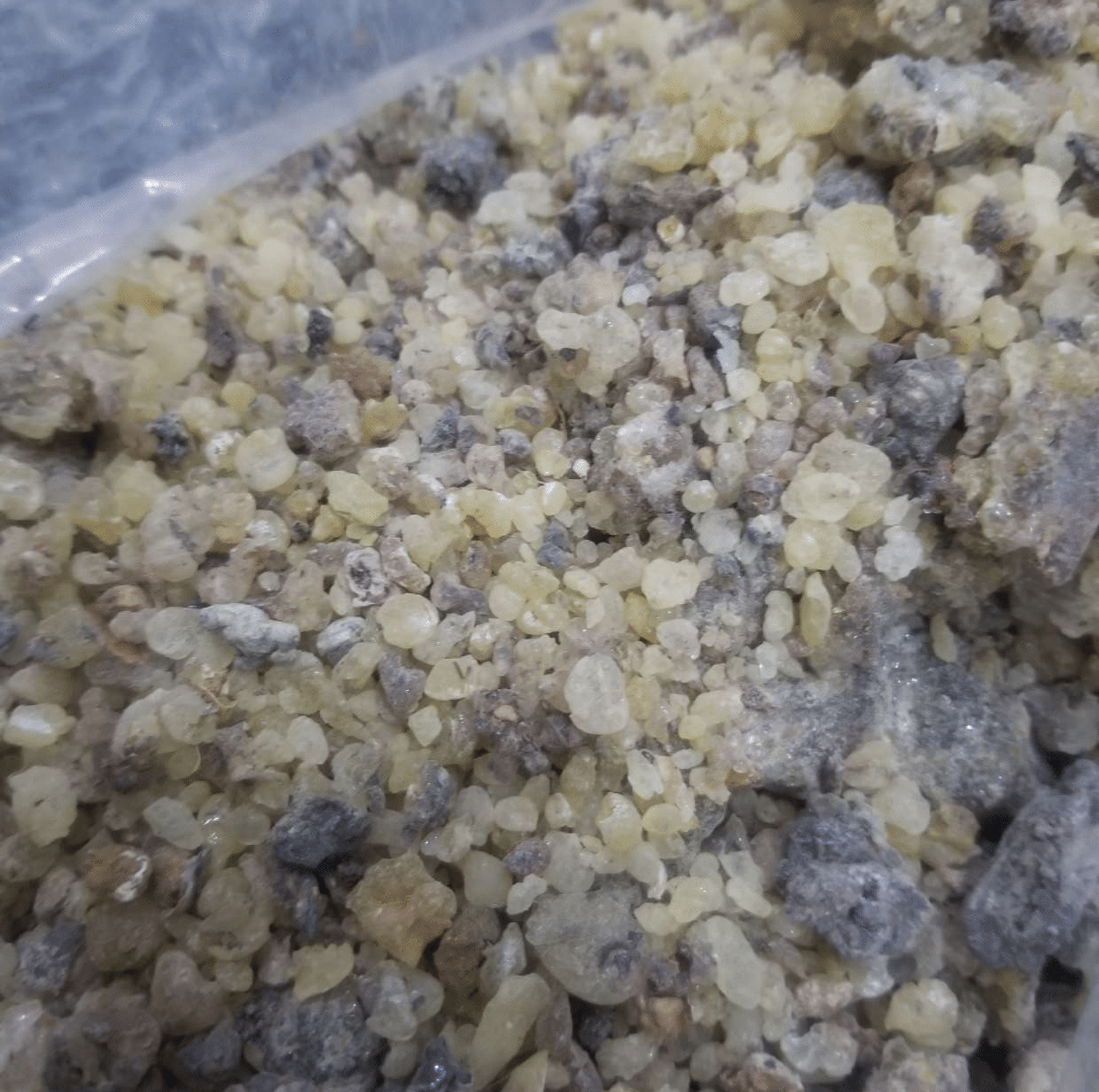 Because the resin forms and falls naturally from the trees under the island’s intense heat, it is normal to find small traces of bark or tiny stones among the resin. This is a sign of its authenticity and natural collection process — a reflection of the deep respect the local people hold for the trees and their environment.
